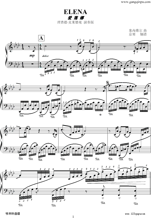 [钢琴谱]爱莲娜-克莱德曼 未知