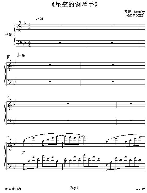 [钢琴谱]星空的钢琴手-克莱德曼 未知