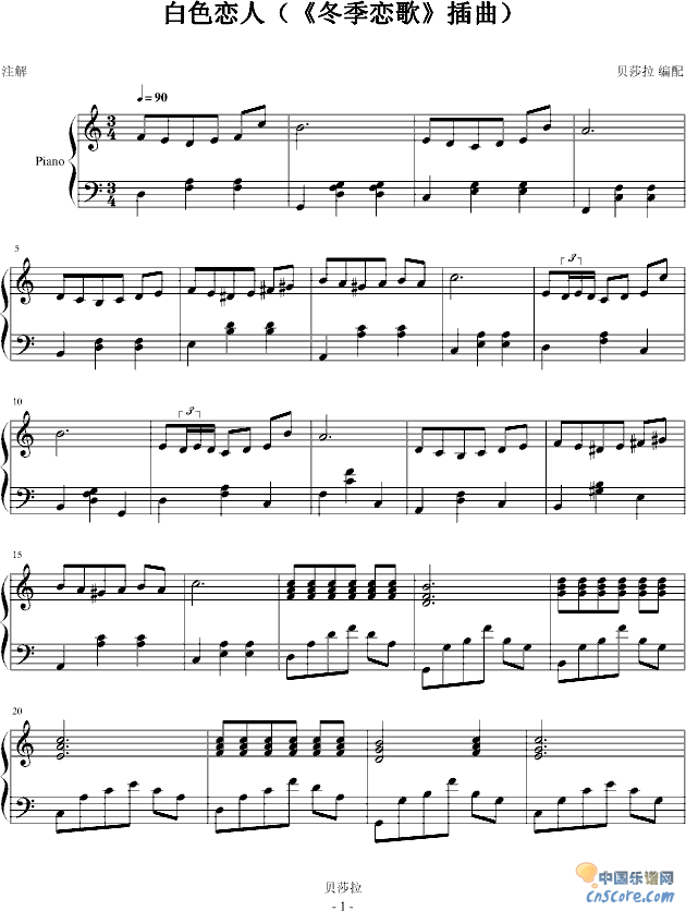 [钢琴谱]白色恋人-贝莎拉版-冬季恋歌 未知